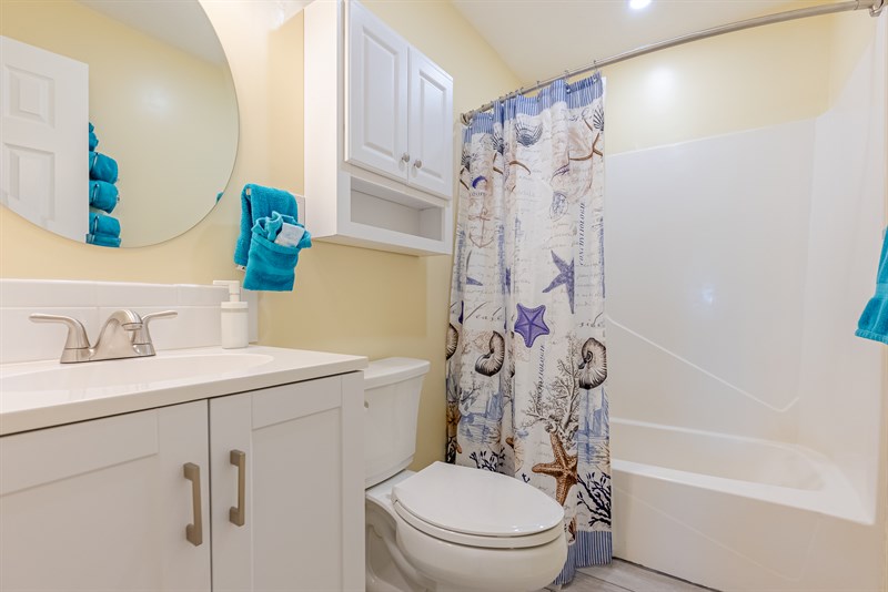 Master bath has walk-in shower; guest bathroom has a tub / shower combo; both with new flooring, vanities and lights.